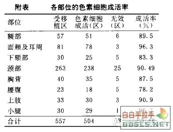 不同部位的色素成活率还是有区别的,这里引用华山医院傅雯雯教授在1995年所发表的一篇研究中的数据给大家参考。